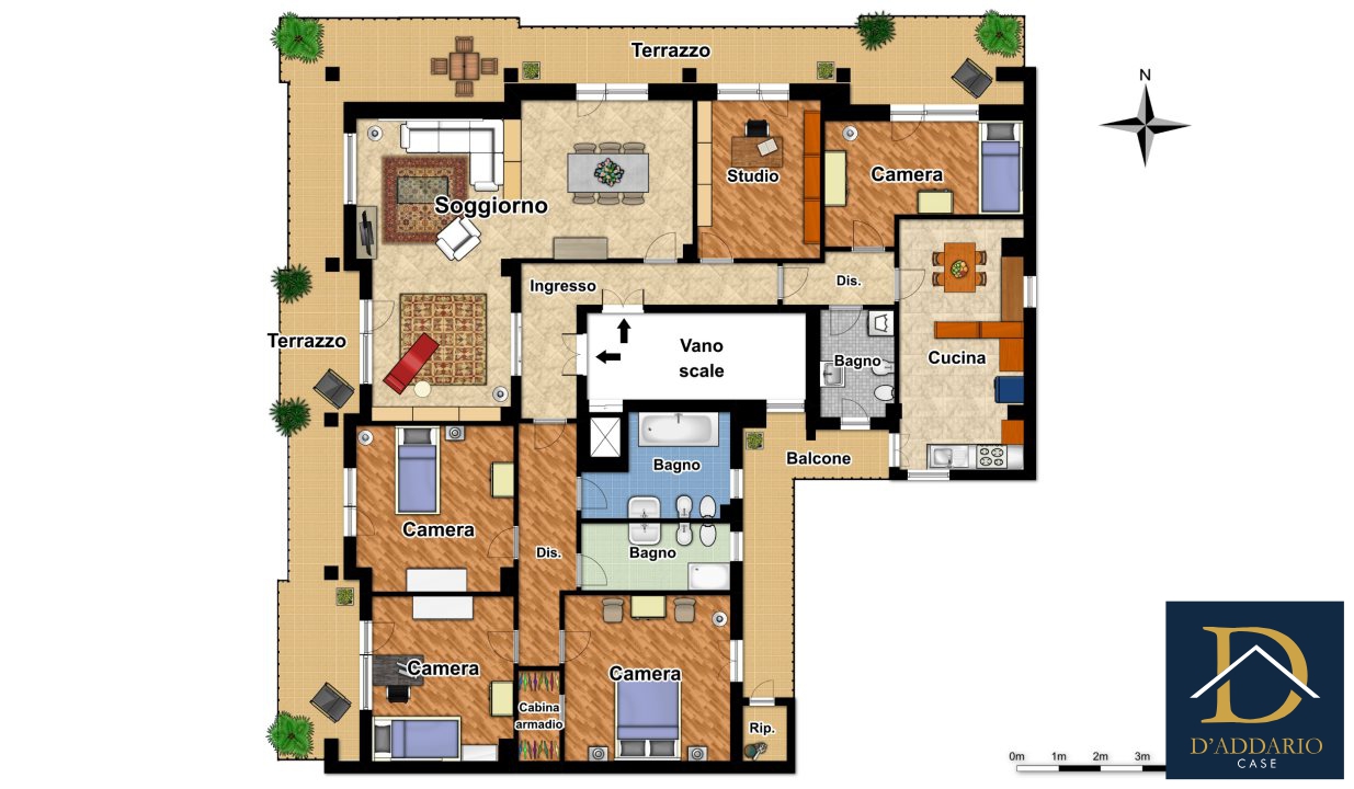 The property develops a floor area of about 230 square meters. with a double entrance,