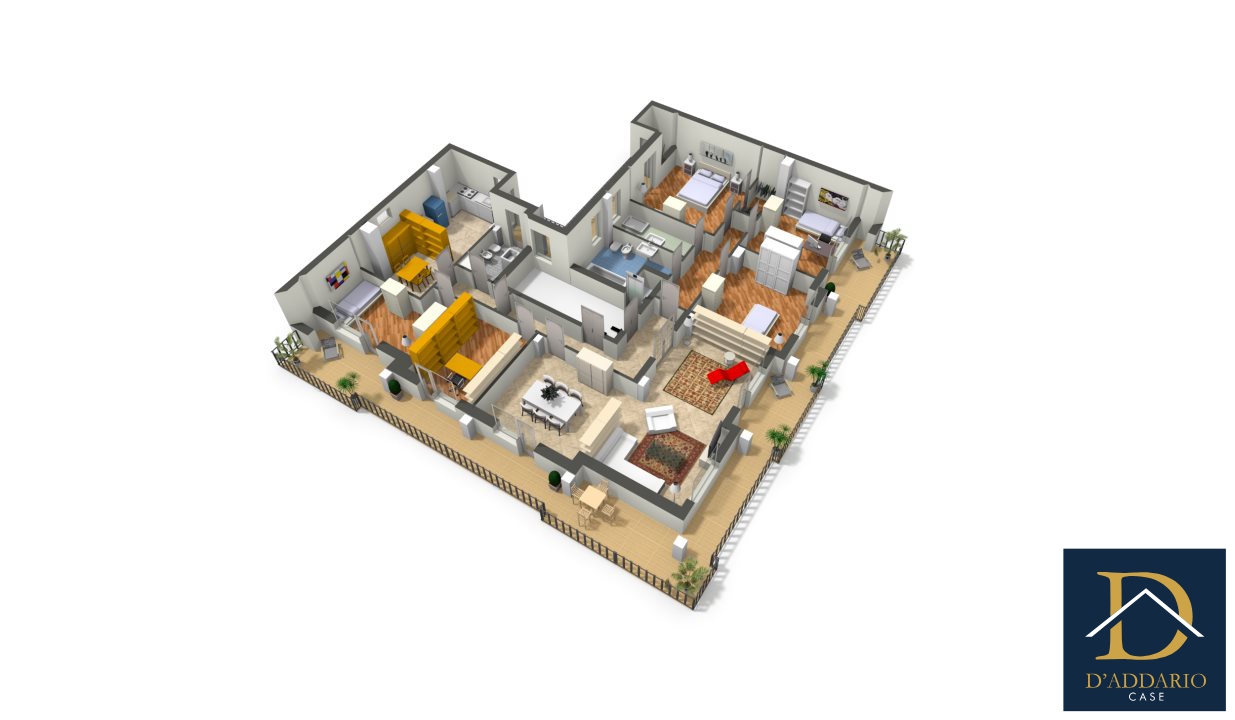 The real estate unit is surrounded by a large corner terrace